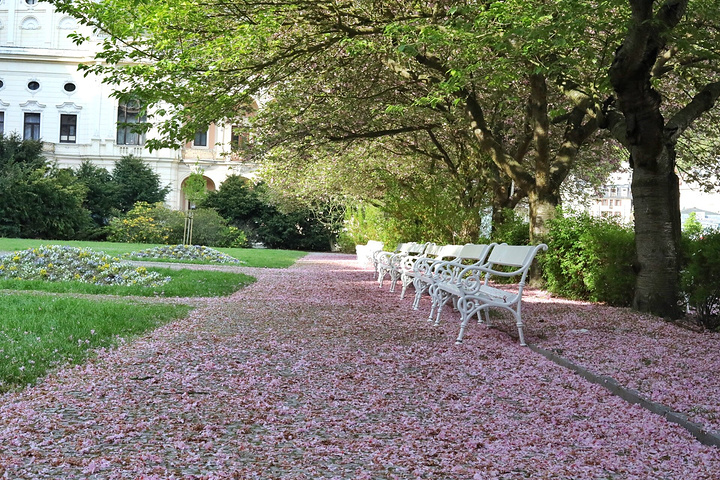 走着走着发现了这条满是落花的小路,太美了!