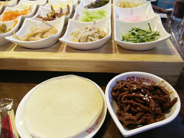 高颜值的丝娃娃,跟春卷差不多,只是里面放的东西不同而已。另外點了京酱肉丝做辅料