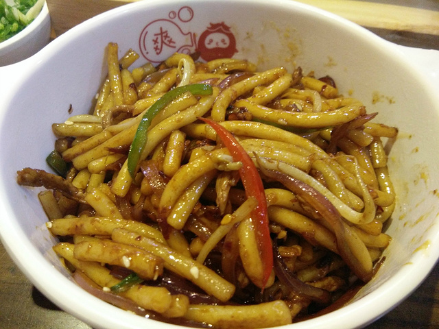 炒酸粉。其实一点儿也不酸,味道很好。酸粉感觉是粉和面的综合版,既有粉的Q弹,又有面的筋道,喜欢~~妞儿推荐的就是不一样
