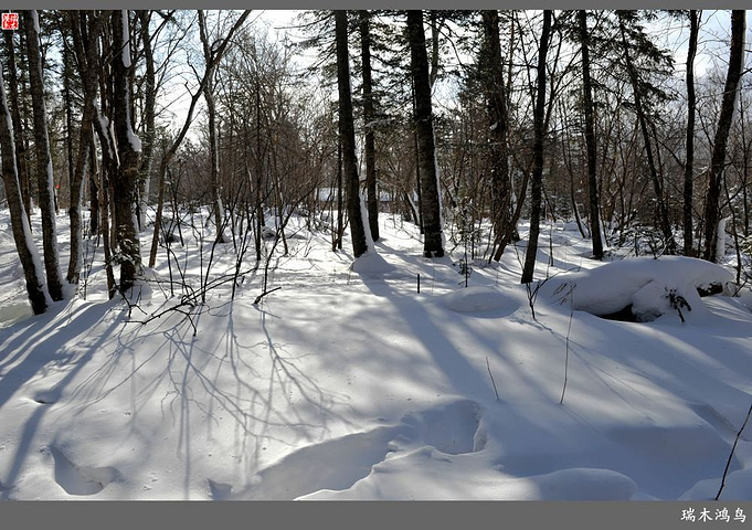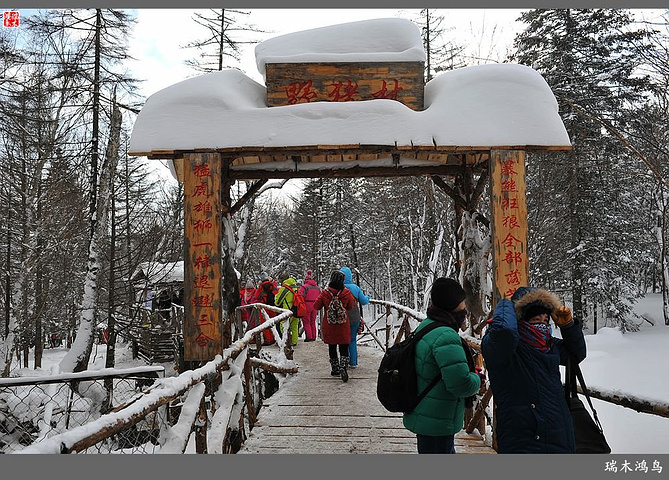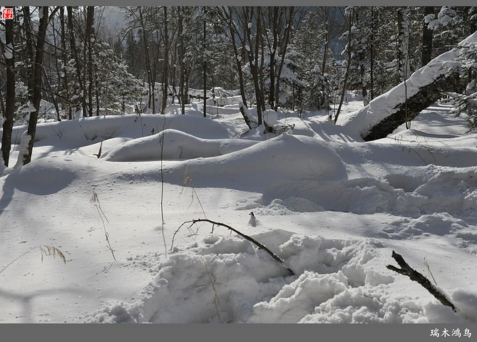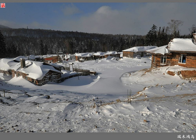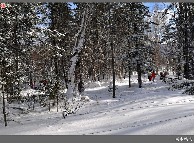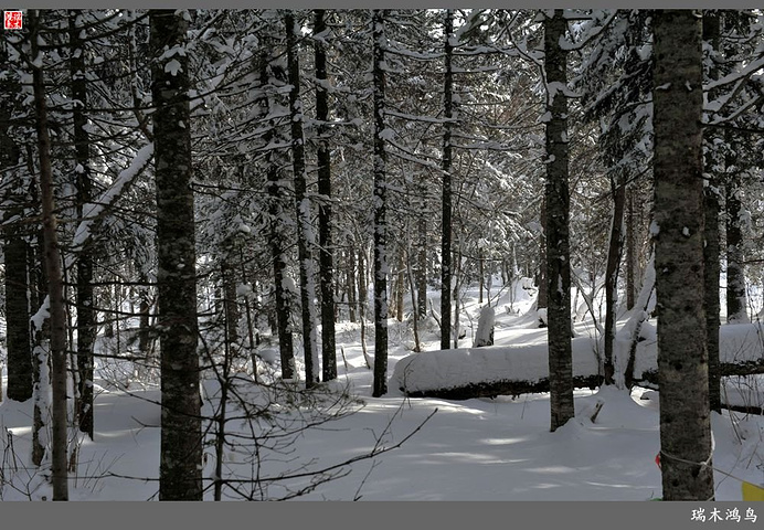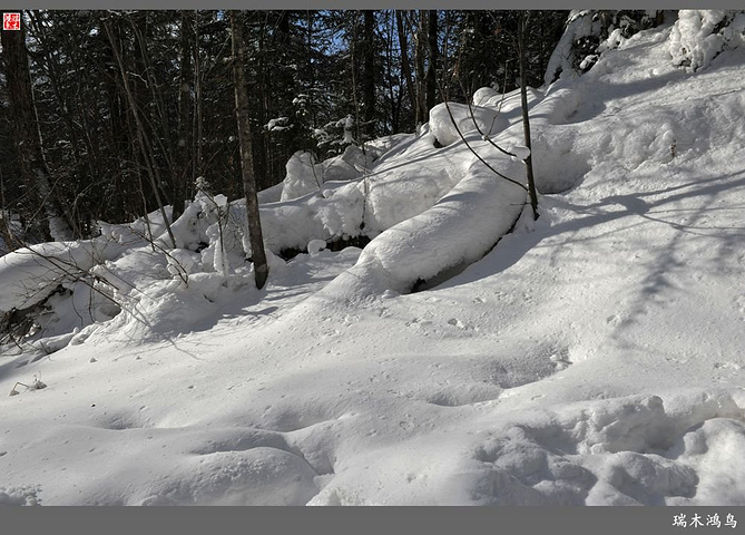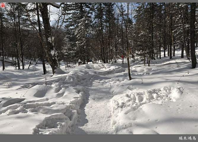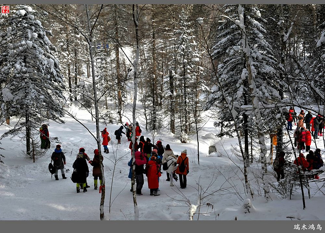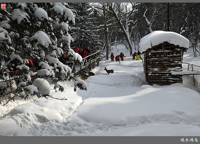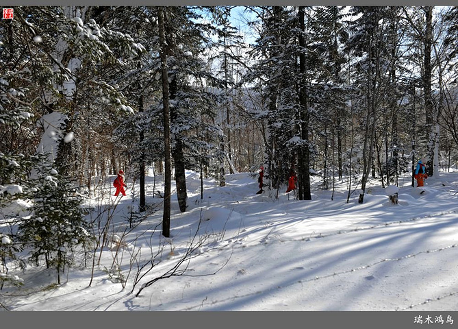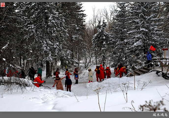 次日清晨,我们换上厚厚的冬装,登上大巴车驱车前往雪乡,除了我们的团队,其他团队几乎都是南方客,到处都是湘音、川调、你侬我侬的上海本帮味道,还有几乎从未见到过雪景的广东人,他们都租赁了亚布力滑雪场的滑雪服以保暖,貌似冰雪健儿,茫茫雪原中五颜六色的滑雪服也是一道亮丽的风景。沿途没有了高速,车在茫茫的张广财岭盘山道上爬行,隆冬季节这里几乎天天飘着雪花,飞雪迎宾,好一派北国风光,途中经过大雪谷景区,进行了一把穿越林海雪原的昂贵游戏,与梅花鹿、狍子、山猪、雪鸡零距离接触,感受了大东北冰天雪地的冻人情怀、威虎山的山寨豪情和雪地摩托的疯狂。穿林海,跨雪原,气冲霄汉,瑞雪初霁,山色如黛,山高林密,小径曲折,人迹罕至处竟是一条未上冻的小河淙淙流淌,两岸已结了冰层,冰层之上覆盖着自入冬以来的每一场降雪,河岸边的大石头,就像是一朵朵盛放的雪蘑菇。玉龙飞舞遮天日,鳞甲散落满峰峦,雪深三尺,堆银铺玉,晶莹剔透,好一个冰雪世界。雪质极佳,雪大雪白且雪粘,随风雕琢,与物具形,宛如蘑菇挺秀、白猿献桃、怪蟒翻身、野马奔腾、海龟望月,不一而足,异状纷呈。更有奇者,房屋披挂“雪帘”,亦称“雪舌”,竟与地面大雪粘合。置身其间,如临童话世界,玩雪赏雪、登山摄影,心身俱爽,其乐融融。一路踏雪前行,踩在上面吱吱作响,像一曲美妙的乐章,伴随着我们一路欢歌笑语,缓缓地前行,一路的美景恍惚眼前,幻入梦幻冰雪的童话世界。