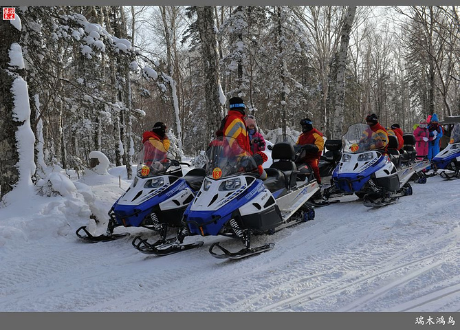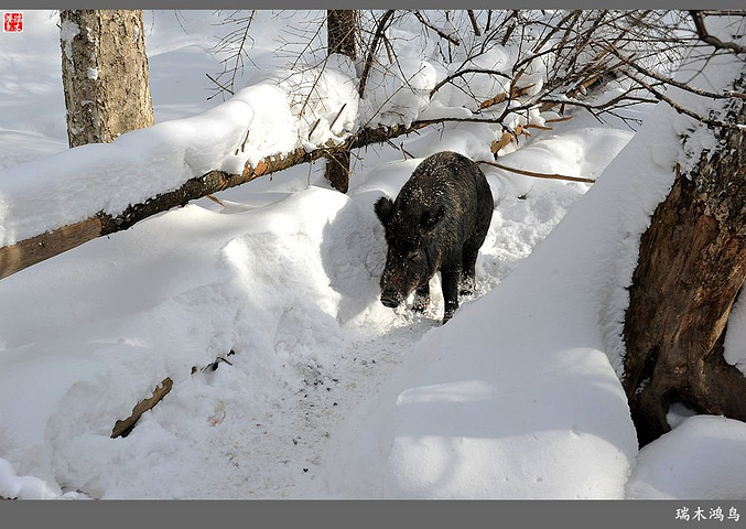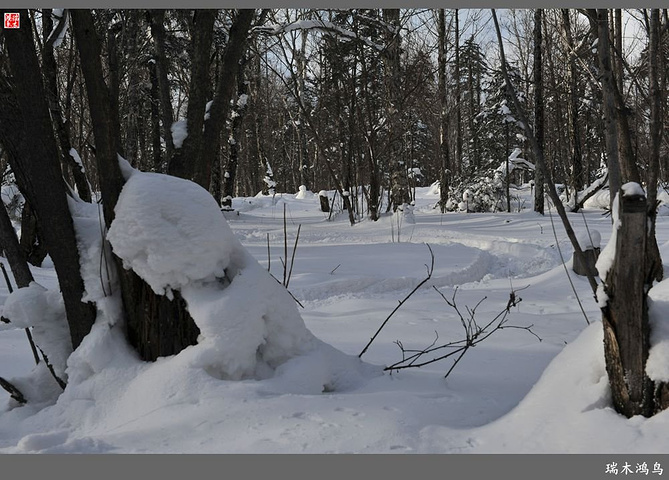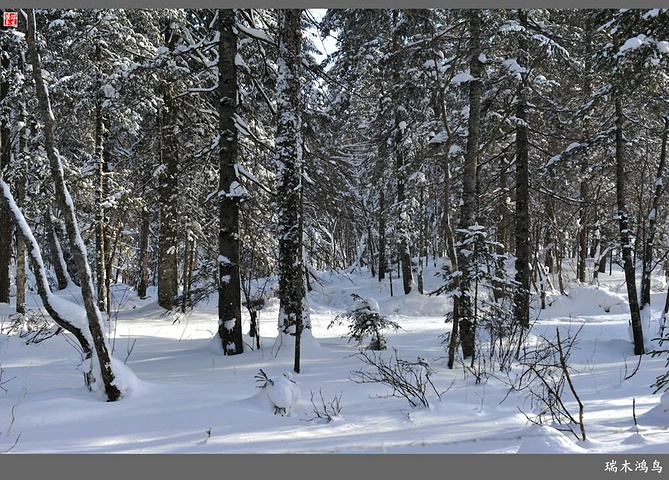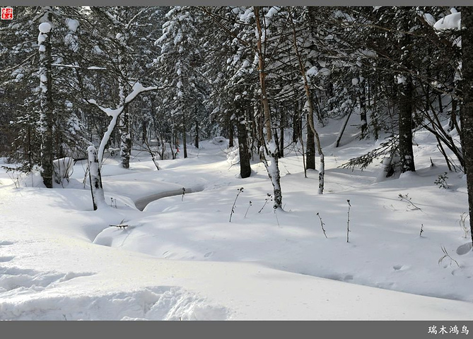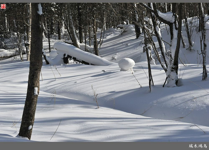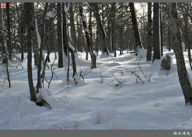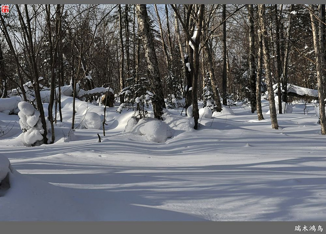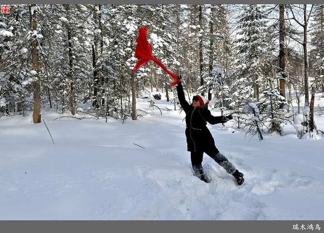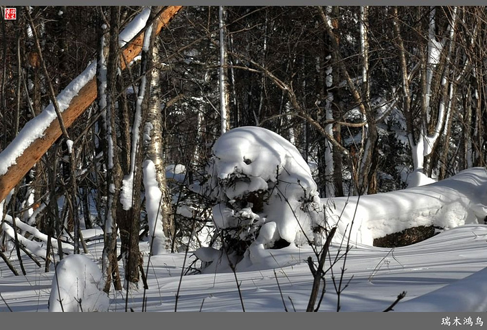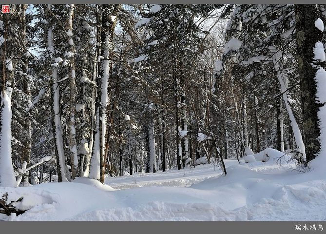 次日清晨,我们换上厚厚的冬装,登上大巴车驱车前往雪乡,除了我们的团队,其他团队几乎都是南方客,到处都是湘音、川调、你侬我侬的上海本帮味道,还有几乎从未见到过雪景的广东人,他们都租赁了亚布力滑雪场的滑雪服以保暖,貌似冰雪健儿,茫茫雪原中五颜六色的滑雪服也是一道亮丽的风景。沿途没有了高速,车在茫茫的张广财岭盘山道上爬行,隆冬季节这里几乎天天飘着雪花,飞雪迎宾,好一派北国风光,途中经过大雪谷景区,进行了一把穿越林海雪原的昂贵游戏,与梅花鹿、狍子、山猪、雪鸡零距离接触,感受了大东北冰天雪地的冻人情怀、威虎山的山寨豪情和雪地摩托的疯狂。穿林海,跨雪原,气冲霄汉,瑞雪初霁,山色如黛,山高林密,小径曲折,人迹罕至处竟是一条未上冻的小河淙淙流淌,两岸已结了冰层,冰层之上覆盖着自入冬以来的每一场降雪,河岸边的大石头,就像是一朵朵盛放的雪蘑菇。玉龙飞舞遮天日,鳞甲散落满峰峦,雪深三尺,堆银铺玉,晶莹剔透,好一个冰雪世界。雪质极佳,雪大雪白且雪粘,随风雕琢,与物具形,宛如蘑菇挺秀、白猿献桃、怪蟒翻身、野马奔腾、海龟望月,不一而足,异状纷呈。更有奇者,房屋披挂“雪帘”,亦称“雪舌”,竟与地面大雪粘合。置身其间,如临童话世界,玩雪赏雪、登山摄影,心身俱爽,其乐融融。一路踏雪前行,踩在上面吱吱作响,像一曲美妙的乐章,伴随着我们一路欢歌笑语,缓缓地前行,一路的美景恍惚眼前,幻入梦幻冰雪的童话世界。