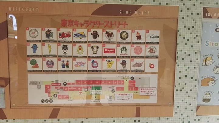 宫崎骏、HELLOKITTY、皮卡丘、小丸子、MOOMIN、轻松熊、米菲兔、乐高等等太多了,全部品牌请看官网,很详细。照了一张店铺品牌地图,如图所示一共26个品牌。