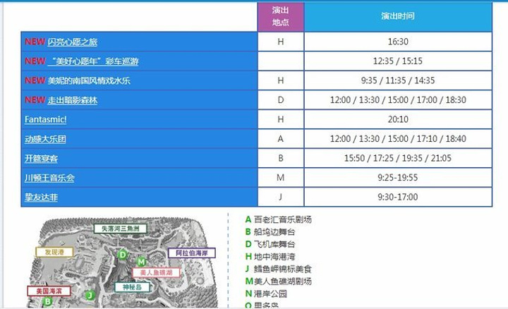 如图,这是2016-8-14的迪士尼land演出时间及地点。