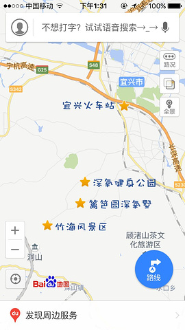 不过我这次主要是在湖㳇周边活动,主要去了深氧公园体验茶园、宜兴竹海公园体会竹林,大家可以看到当时在地图上标记,一张图告诉你各个景点间的距离