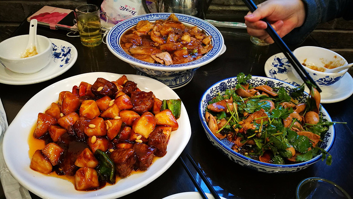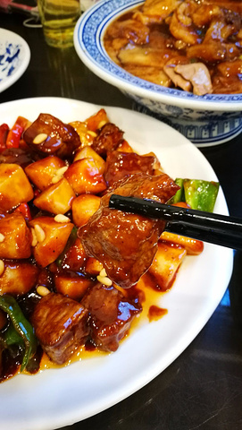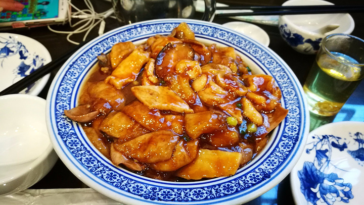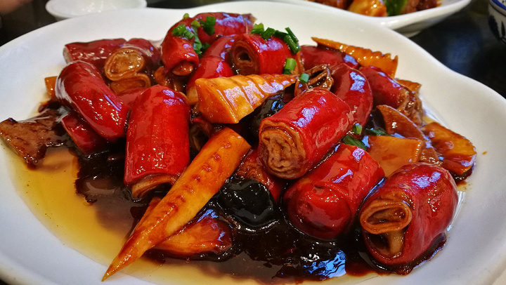 红烧筒肠:浓油酱赤的一道菜,筒肠像套娃,一层套着一层,而且大肠处理的也相当到位,没有一点猪内脏的气息。口感也相当好,紧实有弹性,好吧,我这个不吃内脏的人又忍不住吃了好几个。