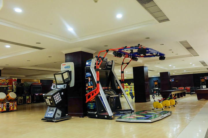 酒店有一整栋楼的运动中心,由一楼的恒温标准游泳馆、网球馆、桌球中心、篮球场,羽毛球馆;二楼的电玩城; 三楼健身中心、四楼桌球;五楼的轮滑、旱冰、擂台等多种运动项目组成。