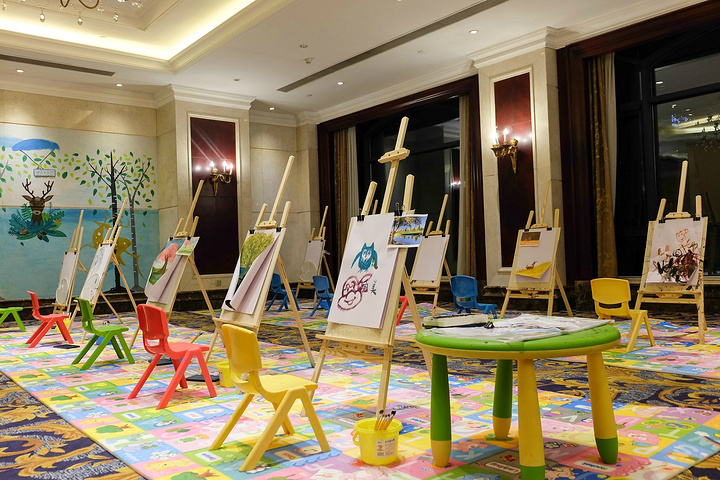 而酒店主楼的一层,有一块区域是值得推荐的,那就是小朋友最喜欢的创作天地了。在这里可以完成自己的水彩作品。我们几个大朋友也过足了瘾。