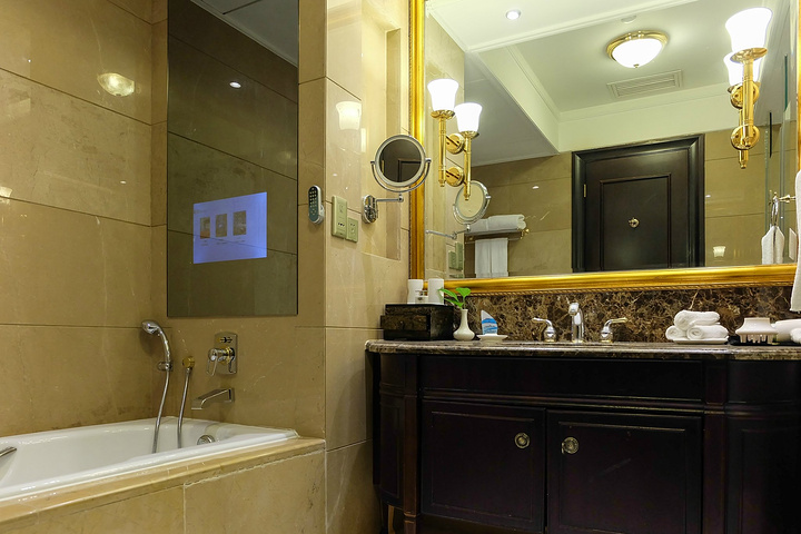 卫浴使用了干湿分离,还在浴缸旁边都装了电视,可以边边泡澡一边看电视了。