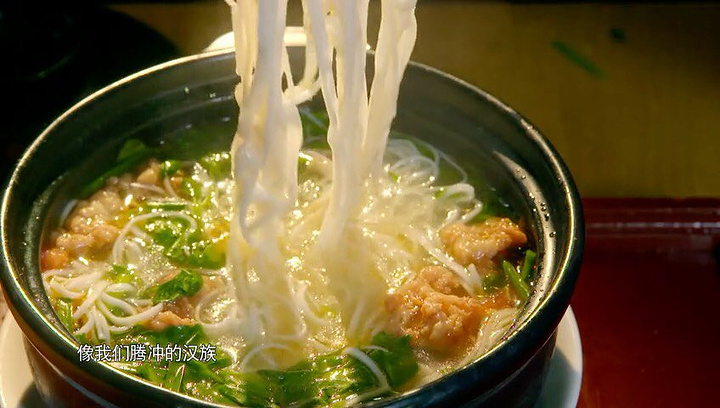 腾冲人的一天习惯从这样的一碗热腾腾的饵丝开始,饵丝简单来说就是米做的面条,口感比米线更细腻香甜。