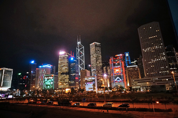 行人天桥的另一边全然不同的景色,不如apple store白得干净纯粹,每一栋大厦霓虹灯闪烁,在夜空下散发着自身的光芒,构成香港岛美丽壮观的城市风景线,犹如一颗璀璨的东方明珠。