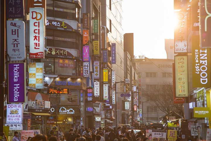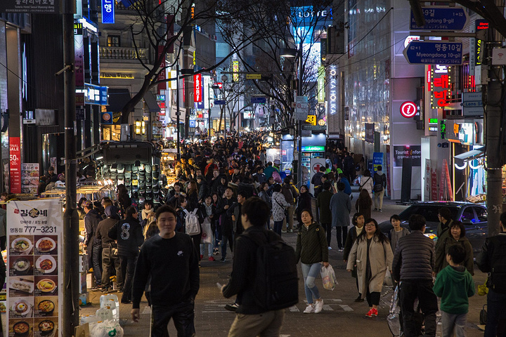 在明洞从白天逛到了黄昏,从黄昏逛到了黑夜,黑夜给了我黑色的眼睛,我却用它来寻找唇彩色号。