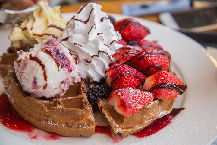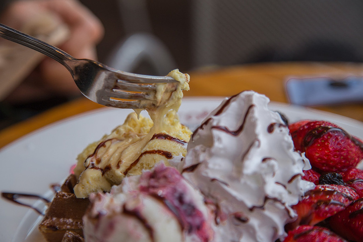我们俩每天起的很晚,早餐都会在路边找一家咖啡店来解决。不管是吃饭还是咖啡,我和妹妹口味都差不多,两杯冰拿铁,麦芬或者pancake,一定要又冰又甜哦。