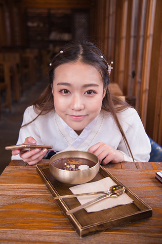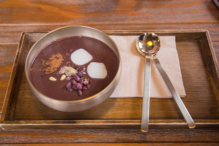 大瓦房酱蟹旁边的一家韩式传统甜品店也很值得推荐,我们到的时候离开餐有点早,就在旁边这家店里休息了一会儿,3月底的首尔还是有些凉的,吃一碗热乎乎的红豆粥又暖胃又舒服。