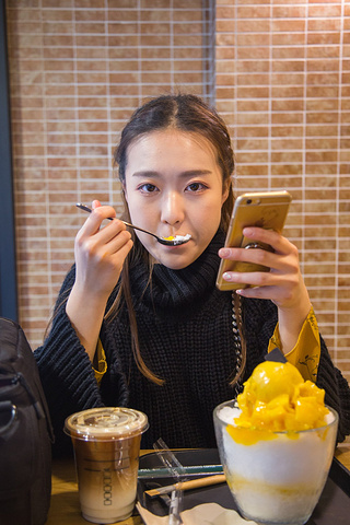 明洞Beans Bins里的沙冰也很好吃,大块的芒果果肉配上冰淇淋,吃起来很爽!