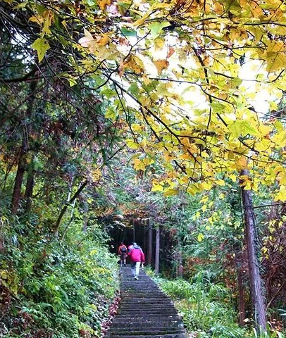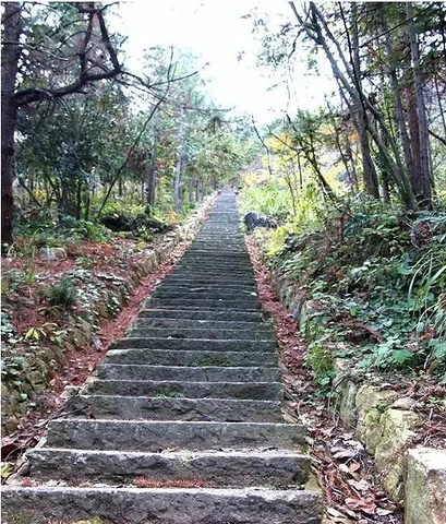 穿过竹林,平整陡峭的石阶一眼望不到头让人生畏。中间虽然有两处休息亭,还是累得我们气喘吁吁、汗流浃背,赶紧脱了外衣。可见千百年来这儿的每块石板吃透了多少挑夫的汗与泪。
