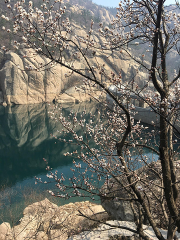 水库安静清澈与山石,树木遥相呼应