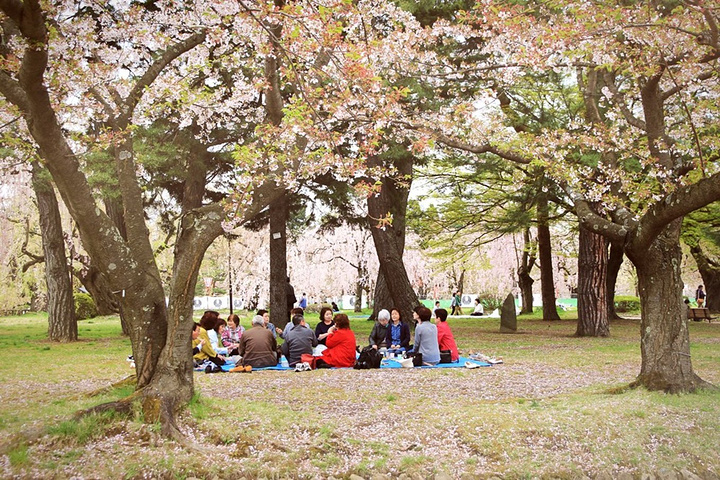 这里的樱花季要比京都一带晚上大半个月的时间,五一小长假期间去还可以看到繁茂的樱花。