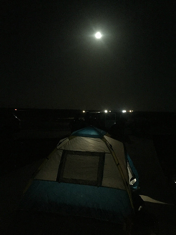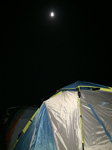 在外边露营,儿子第一回经历,很兴奋,这一天还是八月十五,戈壁滩上的月亮很亮,很清楚