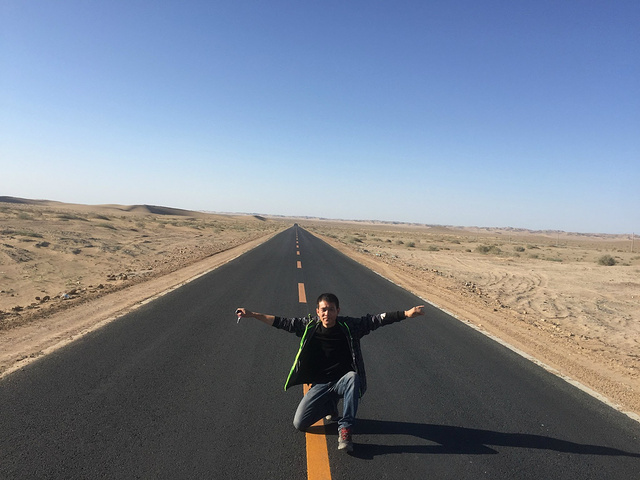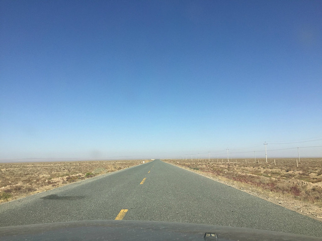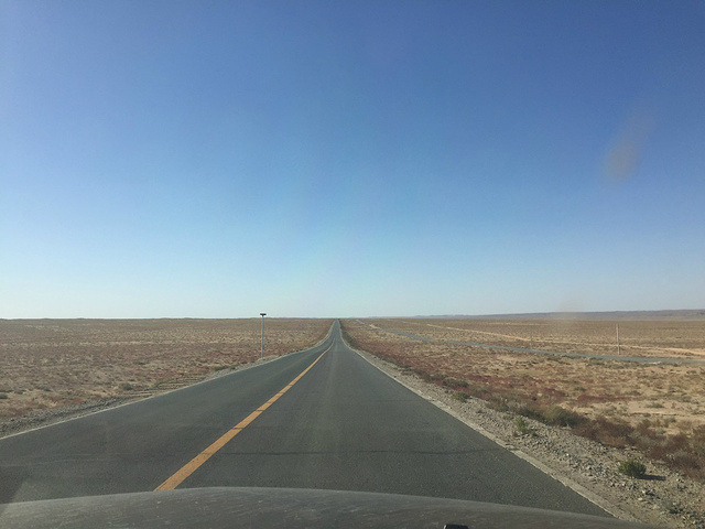一眼望不到边的荒漠,一条笔直的公路,没有车辆