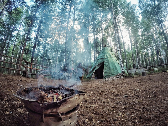 鄂温克人同很多生活在荒野的原始的民族一样,对“火”是无比崇敬的,他们认为火中有神,所以不能往里面吐痰、洒水,也不能朝里面扔那些不干净的东西。他们的火种是不灭的,每当迁徙的时候,会有一头专门拖运火种的驯鹿。而我们喝酒时每打开一瓶,都要先敬火神再喝,是火给予了我们温暖与安全。