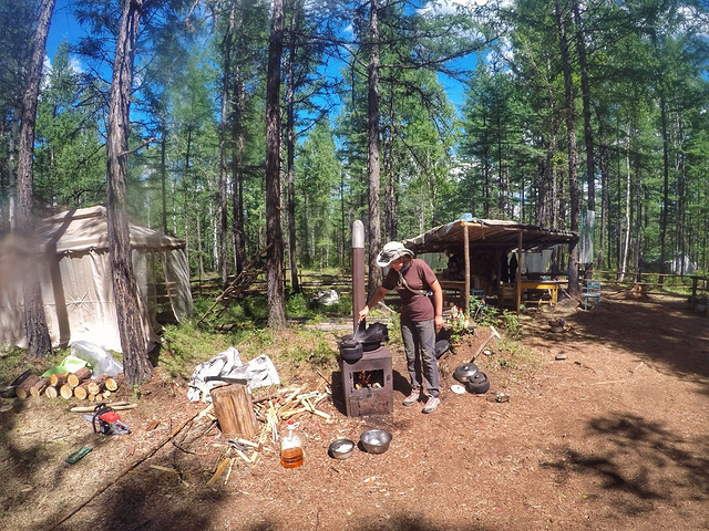 醒来后,一家人的工作也开始了,喂驯鹿、打扫营地...我与保镖也笨手笨脚的跟着做些力所能及的事。