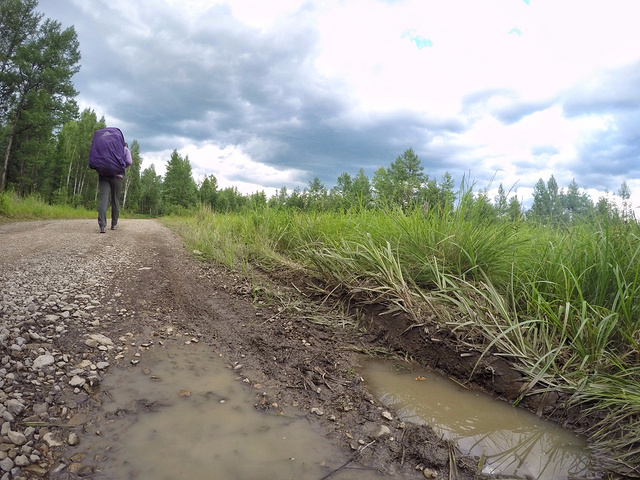 之后这条沙土路弯弯曲曲的通向莽莽苍苍的森林。远离了柏油路,也远离的尘嚣,这里除了鸟鸣与蚊虫拍动翅膀的声响再无其他,世界突然安静了下来。