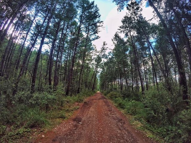 有了目标,屁股上就像戳上了一管兴奋剂,惊喜欲狂的背上龟壳子一路开尥。从根河市出发,沿S301省道前行约20多公里处右转进入一条两车道的林间小路。