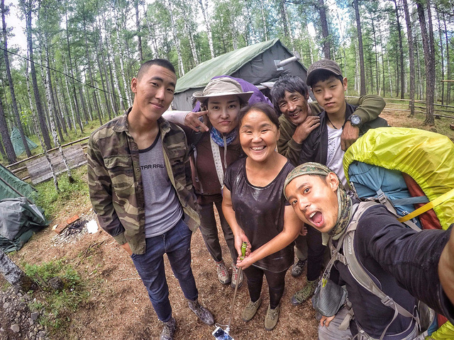 在这个营地中生活着索玉兰一家人,索玉兰就是照片中笑的最灿烂的大姐,她有一张鄂温克人特有的可爱面孔,是玛利亚·索的侄女;姐夫白大哥是汉族人,年轻时相爱后就随索玉兰住在山林中;最左边的大个子是他们的儿子乔克,最右边是乔克的同学,假期一同回家帮父母分担家务。他们一家人常年在这里饲养驯鹿,主要是为了游客参观,但不像敖鲁古雅那样商业化,他们依旧尽量保持着原始状态,由于交通不便,每天的游客只是稀稀拉拉的几个。如今狩猎文化已不可避免的被所谓的“文明”吞噬,旅游业代替了古老的传统,这个时代已经没有与世隔绝的角落,连月亮之上都不再神秘。