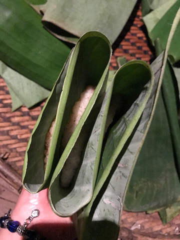 正宗竹筒饭看见没是这样的,芭蕉叶子包烧原生态的美味佳肴