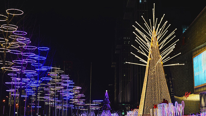 灯光带很炫,仔细看有点刺眼,金地广场那棵带刺的圣诞树有点像牙签盒,不过胜在距离都很近,一口气可逛完好几棵。
