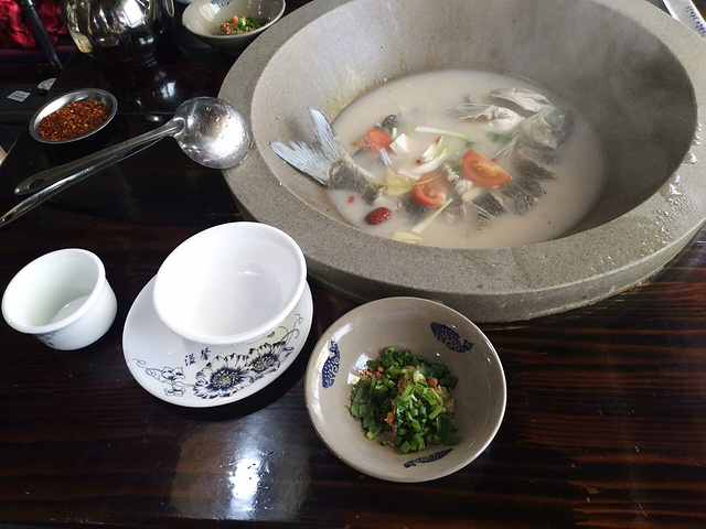 这种取自自然,成于自然的石锅,承天地灵气,吸日月精华,再配以佐料和煮鱼,芳香四溢,食用中还不粘锅。蒸汽饮食法果然不同凡响。
