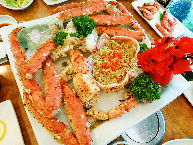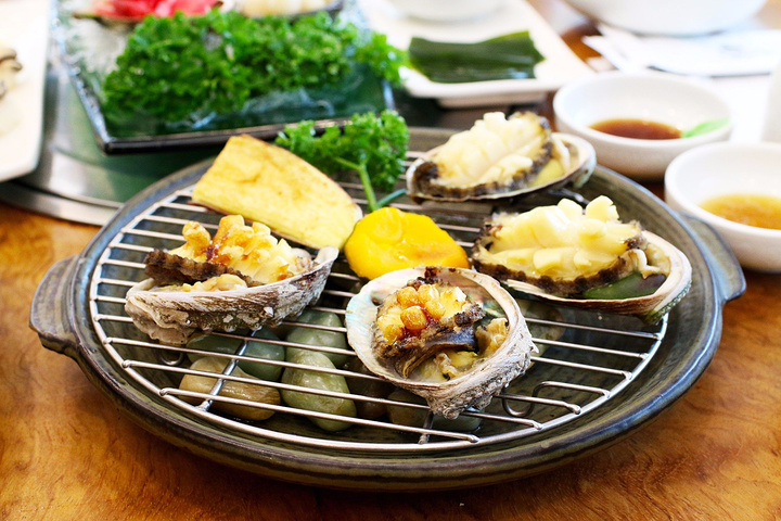 国内的鲍鱼都不便宜,到了济州岛当然要好好吃一顿,这边儿的鲍鱼又大只又新鲜,用海边的鹅卵石来烤的石烤鲍鱼。鲍鱼足肉是划开的,像芒果花一样,仿佛是海洋的耳朵。还有超大只的帝王蟹套餐哦!来自游记[游记蜜语]美丽的济州岛之完整版攻略