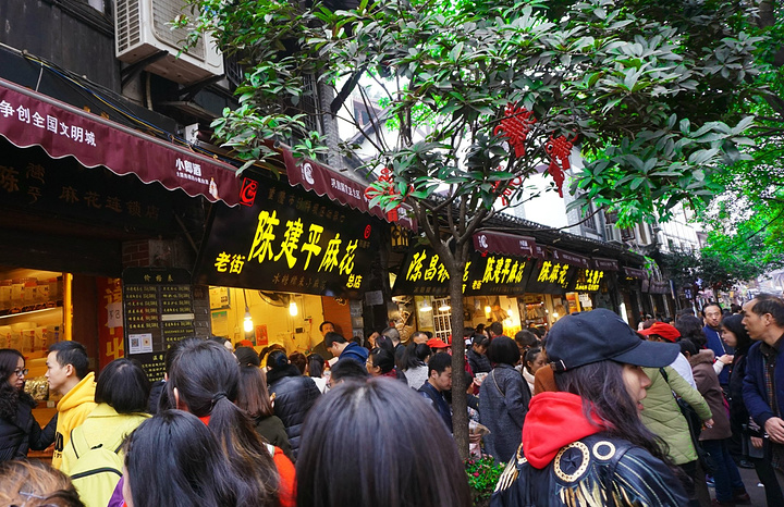 吃完鸡杂出来看到街上人山人海,原来前面就是磁器口古镇最著名的小吃之一——“陈麻花”,这条街上卖麻花的店很多,店名都是陈**麻花,想买最正宗的只要看哪一家排的队最长就可以了。
