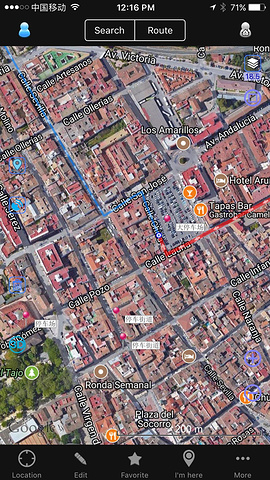 行:从格拉纳达到龙达的路仍然是高速,很好走。但是在龙达城内,我们出了点小状况。翔哥本来查好了可以免费停车的街道靠边停了,但是下车时被机智的我发现只能暂时停,不超过十分钟,于是又开走停到了附近的收费停车场。停车场的位置如下,步行可到新桥。