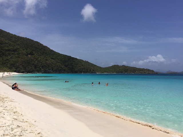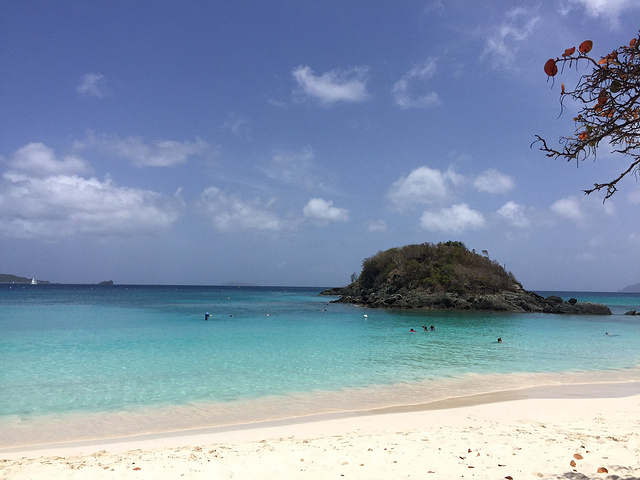 个人游玩路线:下船--坐cab到ferry码头--坐ferry(每个小时一班,14刀往返每人,行程15分钟左右)--到达St.John--坐cab到trunk bay(门票5刀,岛上唯一收费的湾湾,据说是世界top5的海滩)