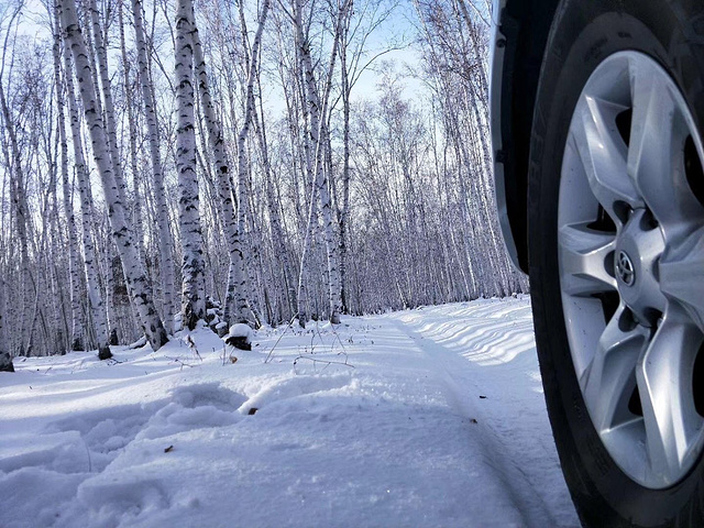 从雾凇林离去时拍摄的。