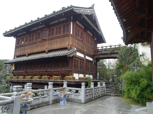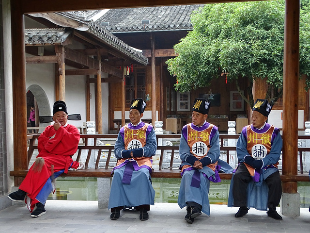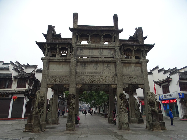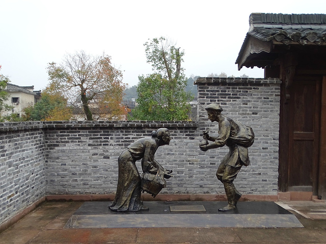 早上7时,我们一行步行5分钟进入徽州古城游览。在古城吃完早餐,从座椅上站起来,你就会发现同伴中出现了几个“黄山脚”——小腿肚酸痛啊,一跛一拐的,犹如发瘟的鸡鸭站起来,挣扎好几步才能恢复正常步态。