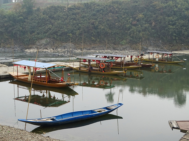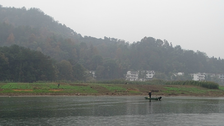 出了渔梁村,我们继续前往新安江深渡码头、凤凰岛。歙县目前正在打造的新安江山水画廊,就是我们前行的沿江江段。行进中,举目望去,夹江两岸,绵延百里,江水清澈透明,景色秀美。到了深渡码头,我们口头约定以每人20元的船资乘渡船游览新安江凤凰岛段半岛形江面,回程后船资再结算。然后登上凤凰岛游览。