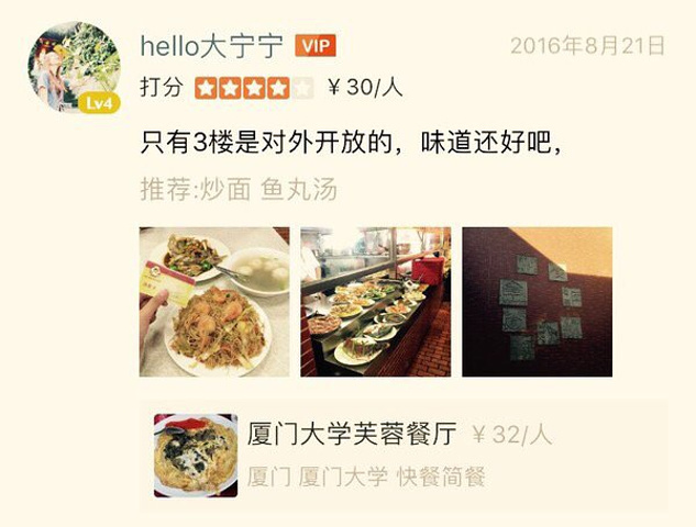 厦大食堂(芙蓉餐厅),只有3楼对外开放