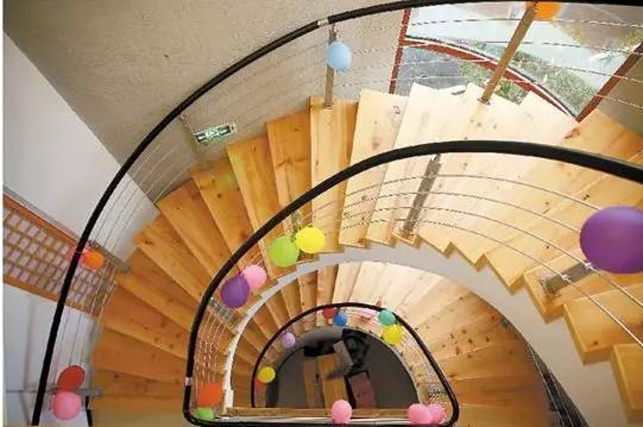 楼房内的阶梯是回旋式的,每个房间都以“石头”为主题元素进行布置。