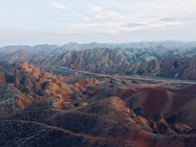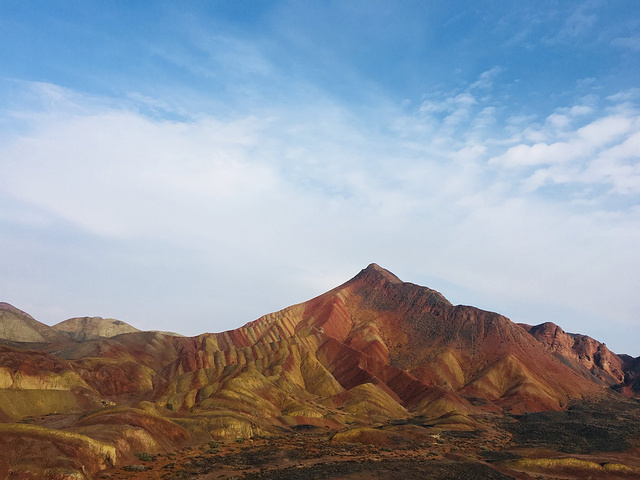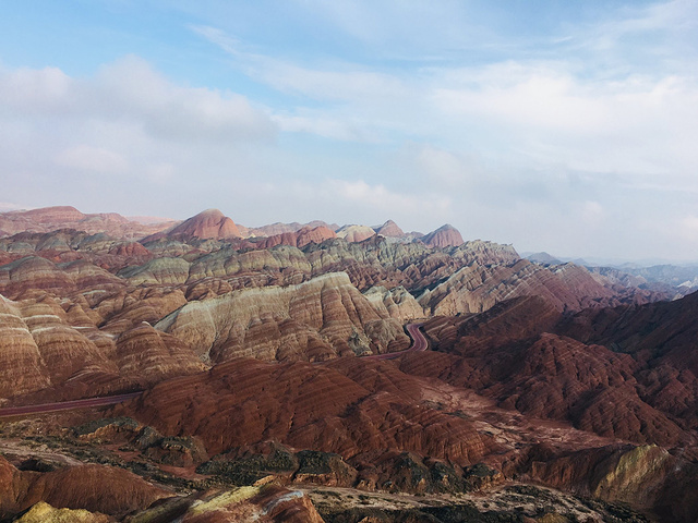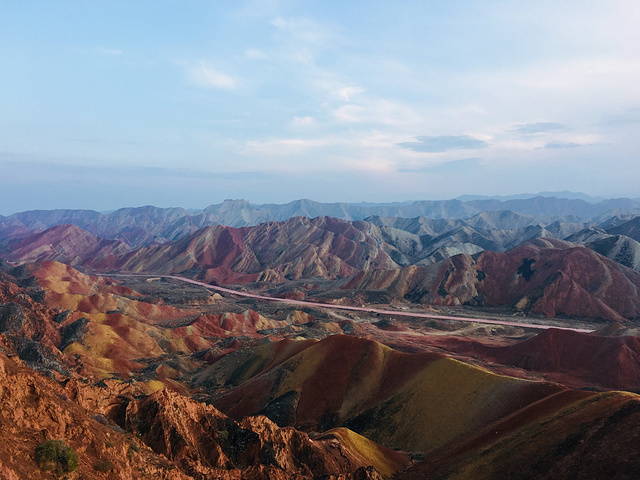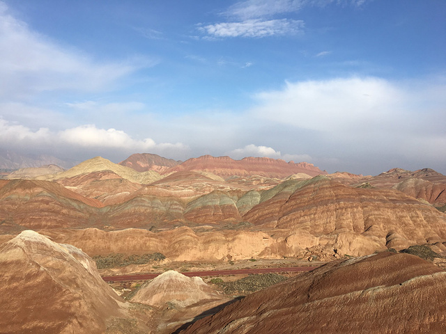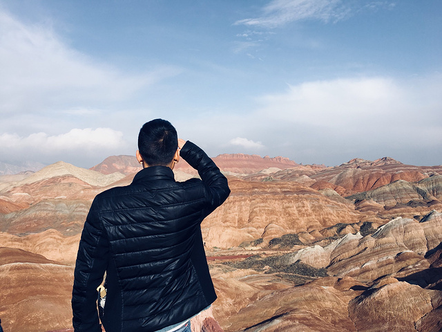 第七天,跟缪姐姐分开了,我又独自上路。西北最后一站——张掖!从额济纳到张扬有直达的汽车,不过最好提前买,我是来到额济纳那天就买好了,还差点没有票,额济纳的景区一年就全靠秋天这个季节,所以人还是很多的。下午到了张掖,住的青年旅舍叫西夏!它是旅馆和青旅都有的一个大院子,毫不夸张的说,这家青旅是我在西北住过的最好的,没有之一。放好行李,时间还早,我吃了碗面马上打的匆匆赶去张掖有名的一个地方——张掖大佛寺!这座曾经盛极一时的西夏国寺就座落在市区里,大隐隐于市。行走在大佛寺里,手触摸着这些千百年历史的建筑,看着檐角的风铃,听着寺里放出的佛家诵经声,我仿佛回到了西夏王国,那个充满神秘的王国。从大佛寺出来,刚刚晒了游寺的照片,孙姐姐就微信过来说,晚上一起吃饭!我的天!她也带着燕子在张掖!还说要介绍一家特别好的青年旅舍给我!奇妙的是,我们在西夏青年旅舍见面了……哈哈哈!还真的是缘分啊!我一见她们,就忍不住来一句:老孙你吖是不是看上我啦,从鸣沙山跟到额济纳又跟到这!........哈哈哈!一群人全都被我逗笑了。不用说,晚饭一行四人(她们还拉着一个帅哥)去当地的一家西北菜馆大搓了一顿,试试西北的特色菜也还可以。第八天,我们几个去当地有名的孙记炒炮吃早饭,盛名之下,还是很不错,值得一吃!吃完后,由于她们三个已经去过张掖丹霞地貌景观了,我只好自己去。这个地方可是我想去好久了的。开始天气不是很好,还下着小雨,幸运的是,当我站到丹霞地貌景点的山上的时候,太阳出来了!哈哈,七彩缤纷的丹霞地貌,像是上天打翻了画家的颜料盘一般,令人惊叹不已!游完丹霞地貌,回去青年旅舍,至此,大西北之行圆满结束。