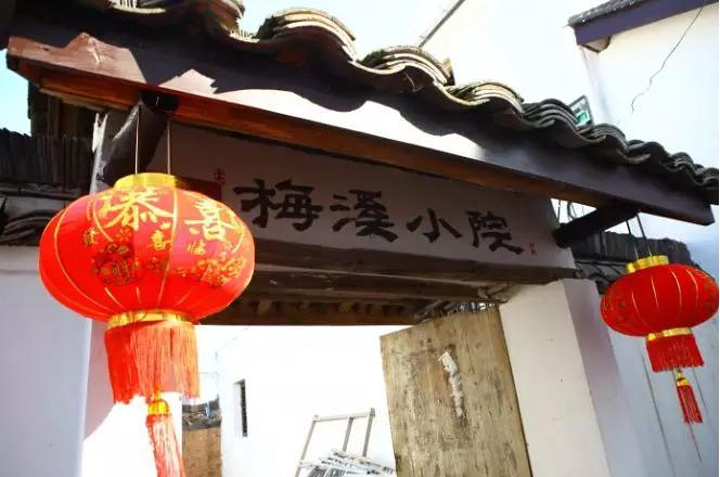 穿过洗衣房来到另一条村道小巷,走过约50米就能看到有家梅溪小院,院内整洁干净,门口挂上的红灯笼在徽派白墙的映衬下格外娇俏。
