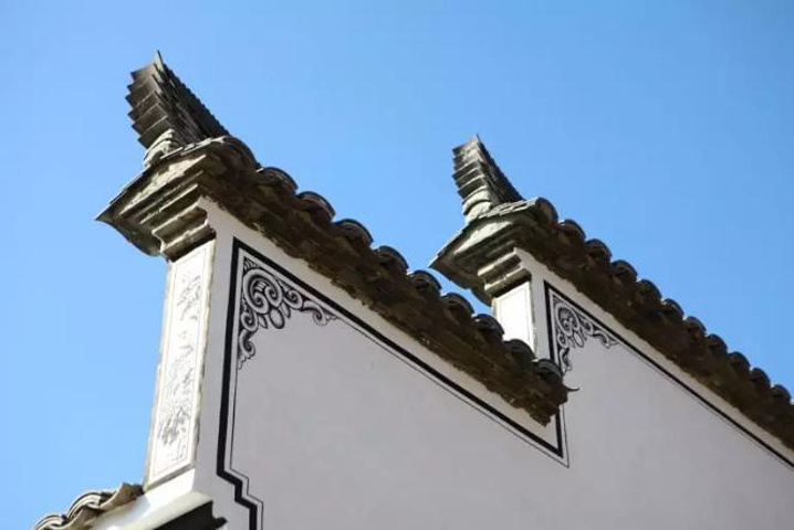 礼堂对面还有村外围的一条巷子,这条巷子严格上来说,其实是村口,朝外的一面墙体上都做了古风的山水墙绘,与徽派建筑屋檐下的图案交相辉映。