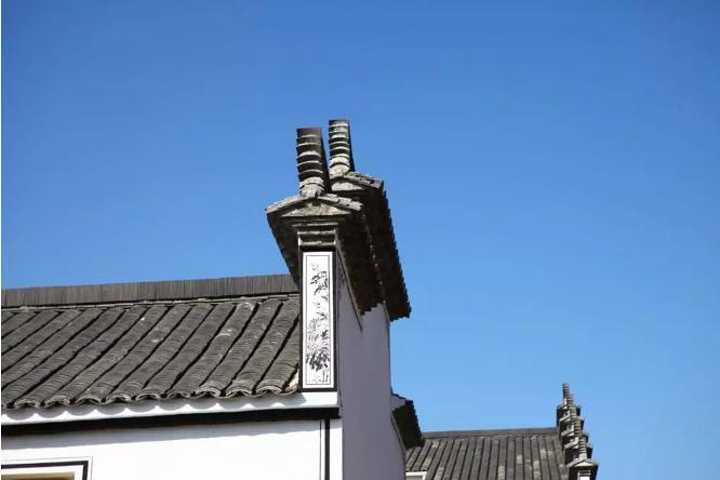 两座圆形拱门之间的通道连通村两头,不长不短的过道两边墙上用农村传统瓦片做了装饰,也算是一种妙用。