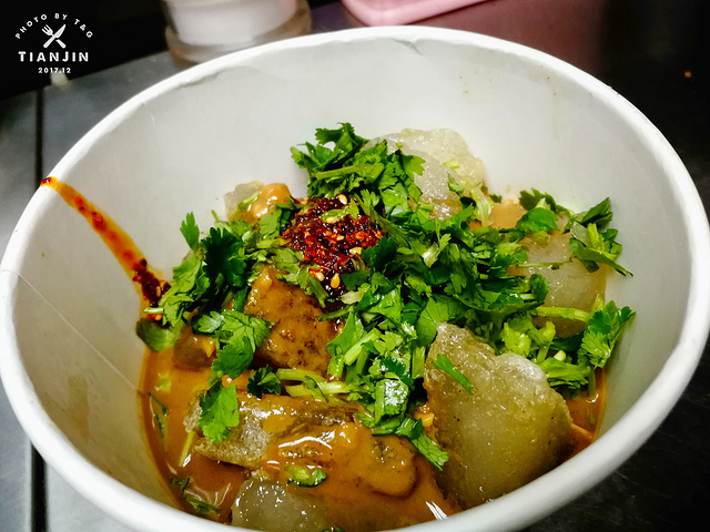 由着这个,老板还说了很多关于天津、关于天津人的有趣故事,说到高兴,又频频给我们添了几铲子焖子。