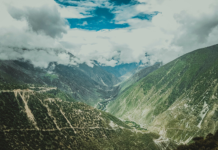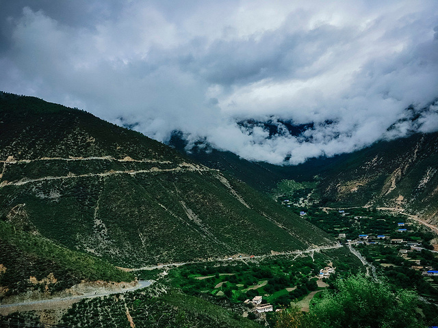 爬到的不是山顶而是云端,云也不再是触手可及,而是身在云海中,骑行在云端,回看如美村、澜沧江和来时镶嵌在半山腰的路带,内心又是惊恐又是喜悦。路遇背包徒步的、骑自行车的、磕长头朝圣的,一路激动的给他们点赞,同时我们也接受着别人的赞,也许这就是这条路上相互鼓励的方式,陌生人之间互相生出敬意,又共同生出对这个大自然的敬畏。图中的藏族小女孩儿朝着我们高喊扎西德勒,就有一种莫名的心动和感激,感激他们的淳朴,感激他们虔诚的信仰,感谢他们略显粗糙却无比鲜活的生命力。