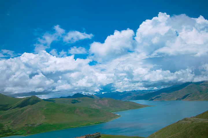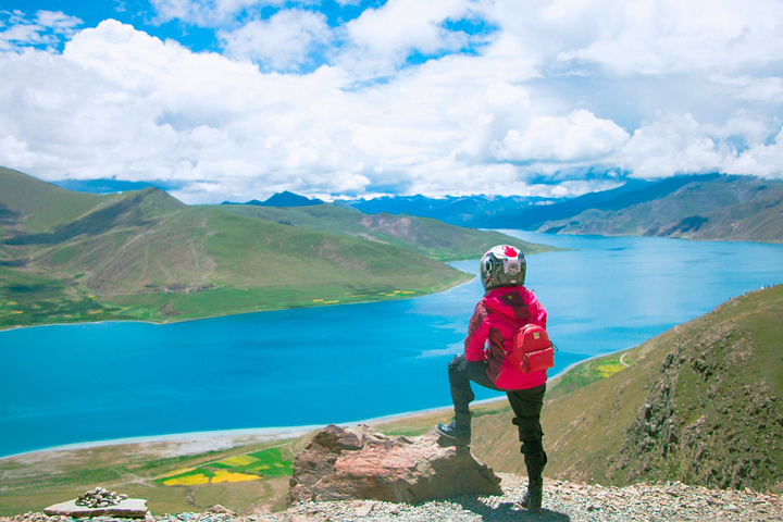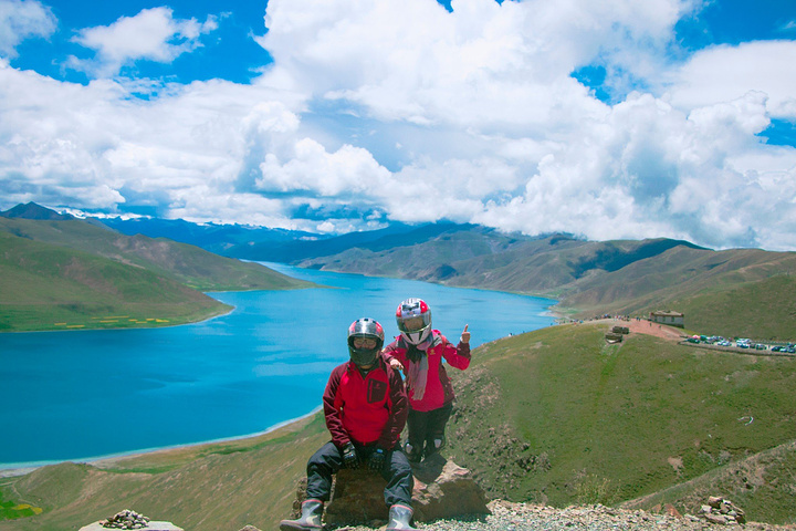 第十天:拉萨到日喀则,景色太多太美,这一天用人在画中游,一天游四季来形容简直就是服帖。旅行真正的美妙之处在于,世界在你出发的一刹那突然充满了悬念。 起床时,拉萨下着雨雾蒙蒙的,犹豫要不要出门,可能是对拉萨的留恋,因为自己故意而为之的遗憾,慢拖拖到十一点多才出门,冒着细雨出门,雨一直下,到了德庆县时,感觉小黑黑的链条松了,想找个专业师傅帮忙紧一紧,因为木木酱怕小黑黑抱恙。然而此时真的必须此次旅行以来的第一次吐槽,第一家店(这里还是不报店名,保持西藏的美好),出来一个小弟,审视了我们一下说扳手借给我们自己弄,他不会弄,100块,夫妇倆很穷的,于是问附近有没有卖扳手的地方,小哥回答没有。二人绝望脸,but,我们还是走了。第二家,店家也不友好,但是谢天谢地总算是指了指工具箱,自己弄(没有收钱)感谢。木木酱弄完问了问哪儿有卖扳手的,老板帮忙指了路,于是20块买到一幅好用的扳手一路畅通。然而在慢慢靠近羊湖的时候,天气变得很好,去羊湖的路都修好了,但是绝逼是山路十八弯慢慢往山上爬,一直爬过5030米的岗巴拉山口,那一抹翠蓝才神迹一般现在眼中。遇见了最美丽的羊卓雍错,真的好美,那平静的湖水,此处就是没文化人的尴尬,我居然真的没有词语来形容了,那就来一句直白的,卧槽太他妈美了。直接赏图。