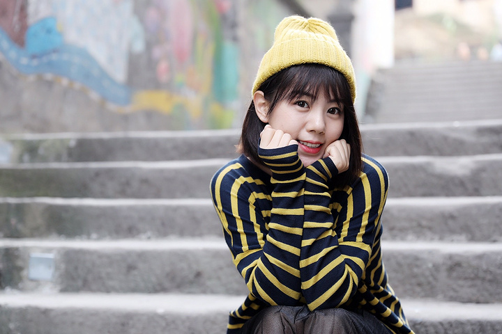再往二厂右边走,是以电影为主题的几栋厂房,在这能碰到不少漂亮的重庆妹子来凹造型,这一刻你见她身着这身衣服,下一秒再相遇,就又换了造型,鹅黄色的铁栏和白墙,的确是拍照最好的背景。