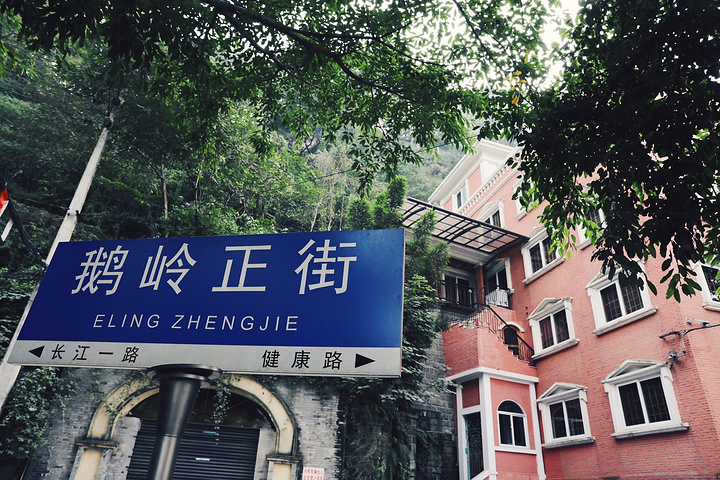 去鹅岭二厂是要费些功夫的,因为是建在山上,我俩在下了中巴车后还要走很长一段山路才能到达。鹅岭并没有鹅,这里因形似鹅颈而得名,站在鹅岭的至高点,可以俯瞰到滚滚长江的城市景色。