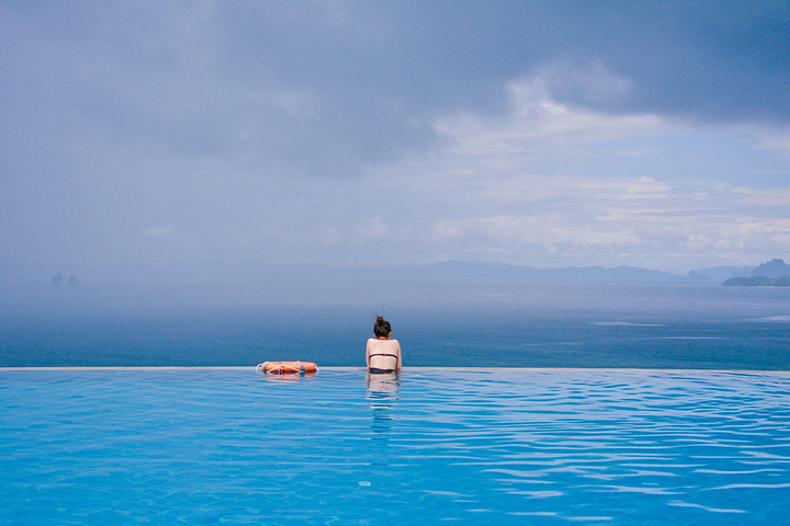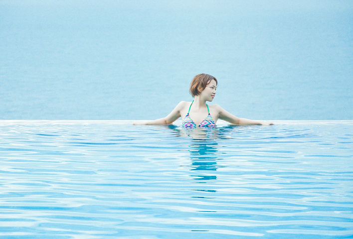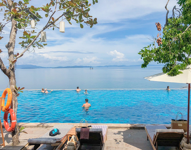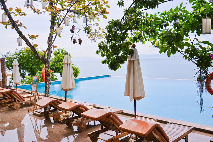 这个泳池就在海边,景色很棒,非常大,缺点就是无敌晒,我们做完SPA大概四点半过去,泳池还是巨晒,除了两个外国小孩,几乎没人。